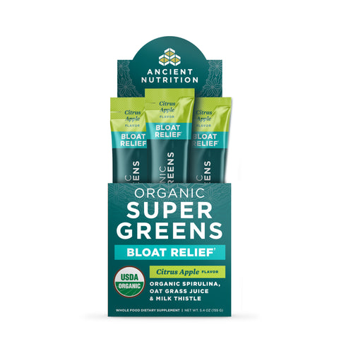 Organic SuperGreens Bloat Relief† Stick Packs | Powder Citrus Apple Flavor (16 Servings)