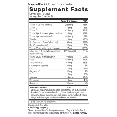 Designed to fill the nutrient gaps in the modern diet, this multivitamin for women 40+ is expertly formulated with vitamins, minerals and time-tested superfood ingredients.